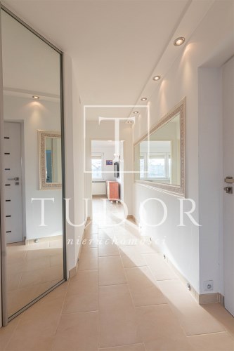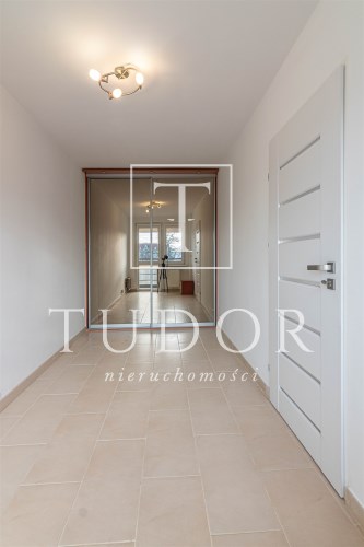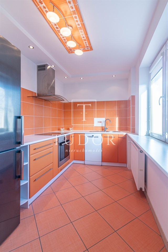Mieszkanie w bardzo dobrym standardzie. Pokoje częściowo umeblowane, w pokoju dziennym wypoczynek skórzany, odbiornik TV, komody, w sypialni łóżko, stolik nocny, w drugiej sypialni szafa w zabudowie. W pokojach na podłodze terakota, ściany gładzone, malowane. Nowa stolarka drzwiowa, okna PCV, na oknach rolety przeciwsłoneczne. Kuchnia oddzielna, z oknem, umeblowana i wyposażona w sprzęt AGD: płyta elektryczna, piekarnik elektryczny, okap, zmywarka, duża lodówka z zamrażalnikiem, podświetlana szafa w zabudowie na drobny sprzęt AGD. Łazienka razem z wc, kabina prysznicowa, liczne szafki na bieliznę i ręczniki, łazienka wyposażona jest w pralkę. W przedpokoju szafa ubraniowa. Mieszkanie wyposażone w robota sprzątającego.